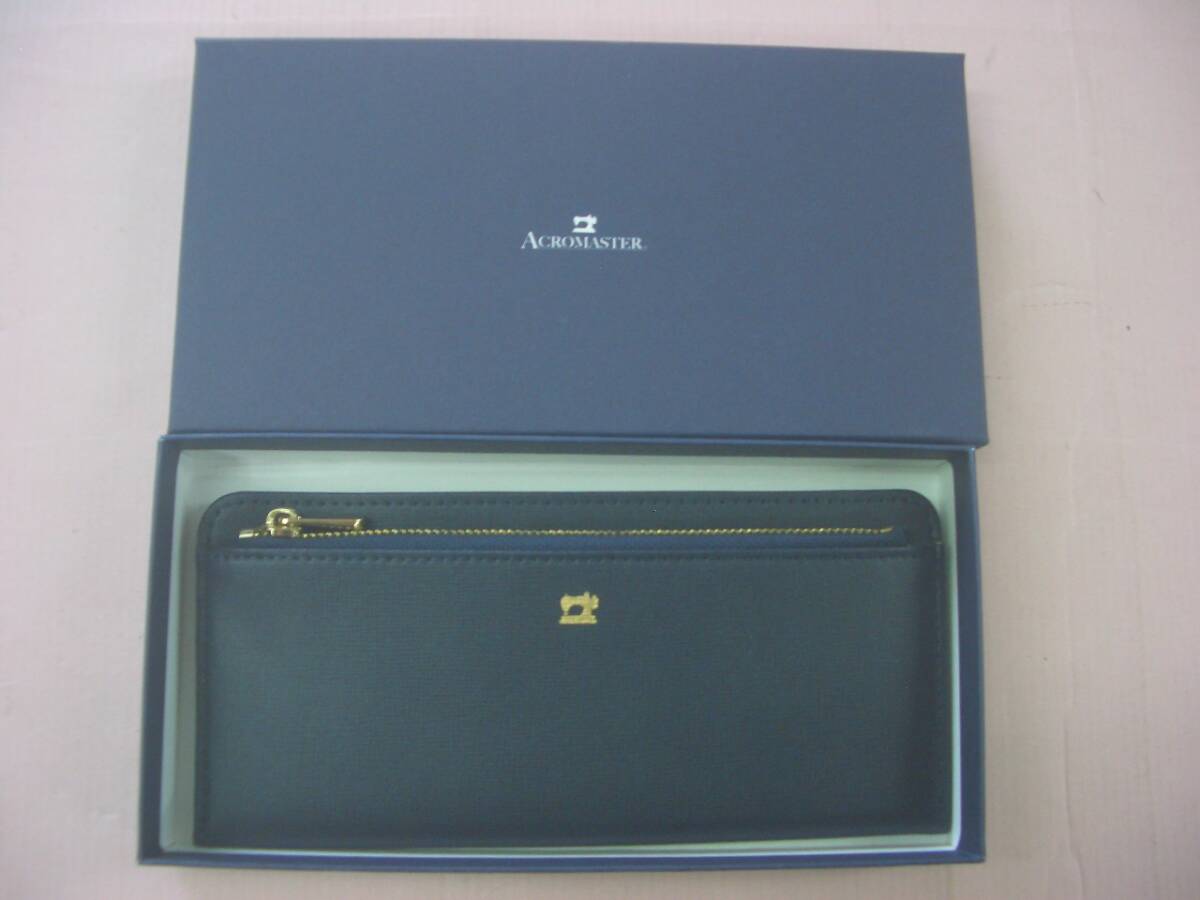 - C6542-185♪【60】ACROMASTER 牛革長財布 (ネイビー)