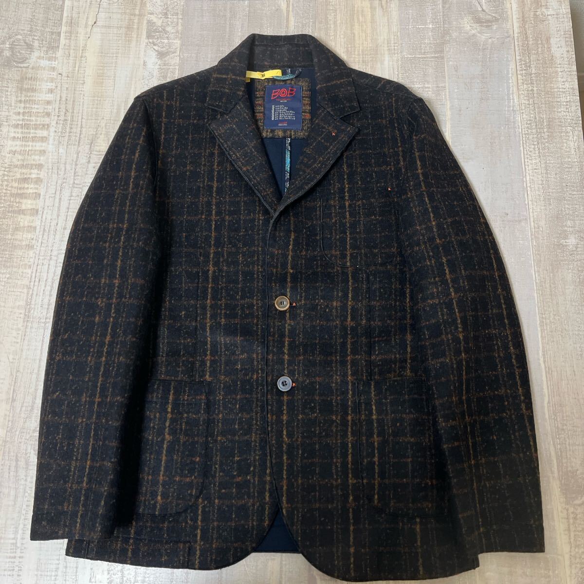 > 【未使用級 イタリア製 ハンドメイド】BOB 2B フラップポケット チェック テーラード ジャケット ボブ サイズ48 ブラック系 レッド メンズ