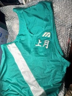 - Mizuno製、メンズ、ランニングシャツ、エメラルドグリーン地に白斜線入り、ポリエステル100%、Lサイズ、