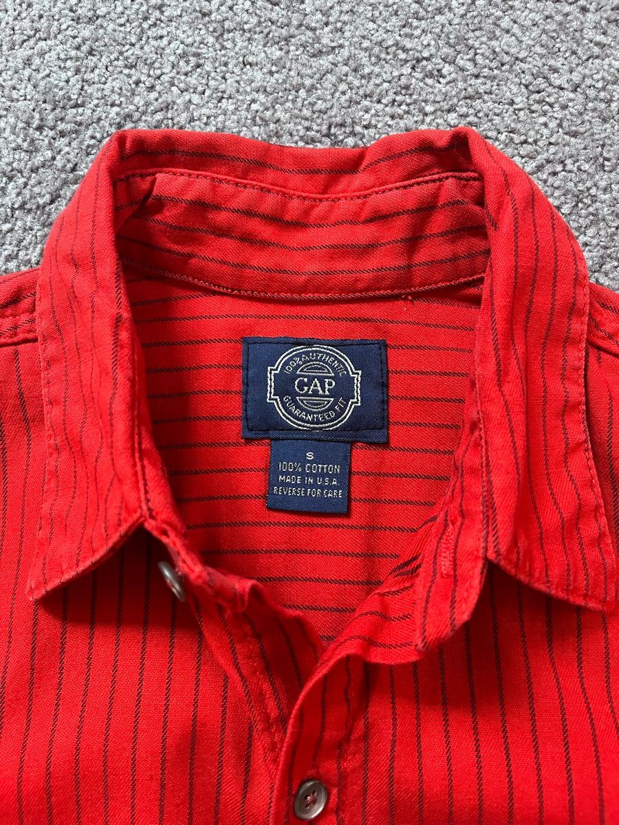 - 80年代 USA製 OLD GAP オールドギャップ ストライプ 半袖シャツ アメリカ製 ビンテージ 旧タグ 無地 赤 80s 90s 検EDDIE BAUER J.CREW S