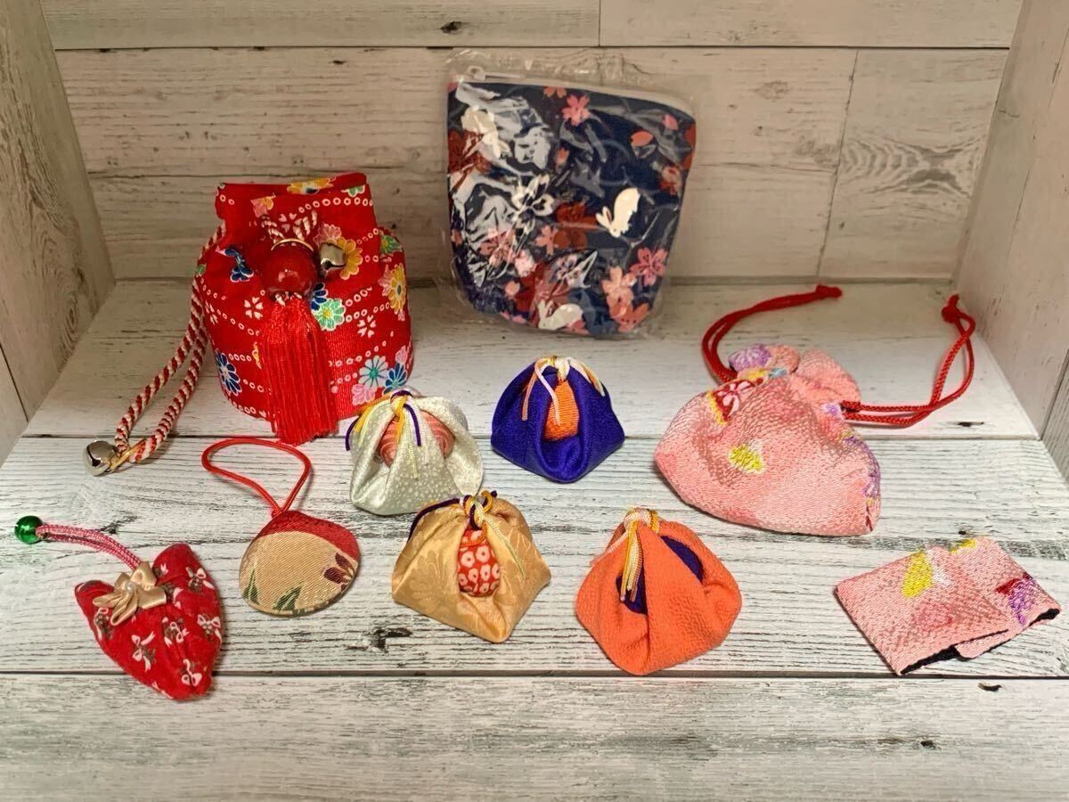 - 和小物 お手玉 巾着 ポーチ 和柄 古布 縮緬 ちりめん 根付 おてだま ハンドメイド 小物