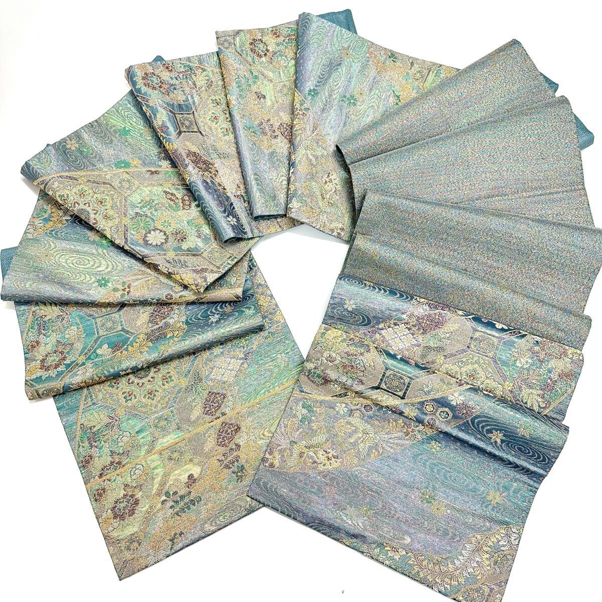 > 【七福】c543 逸品 高級品 正絹 袋帯 六通 鳳凰 華文 蝶 流水に紅葉 陽文綴 金糸 銀糸 刺繍 豪華