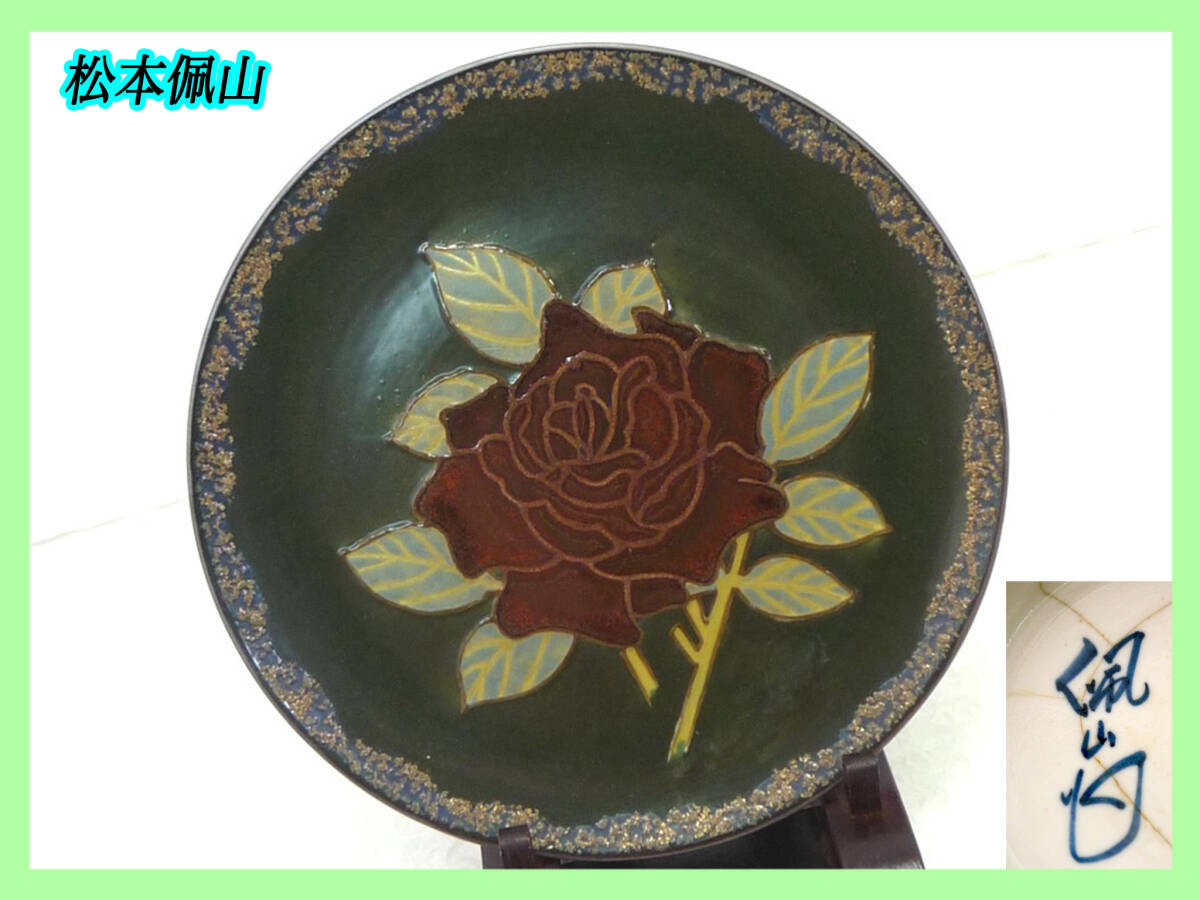 > 旧家蔵出 松本佩山 日恵窯 釉彩花文 陶額 飾皿 薔薇 バラ 芙蓉 芸術指定品 有田焼 名工 銘有 茶道具 趣 逸品 在銘 古風 希少 レア伝統工芸