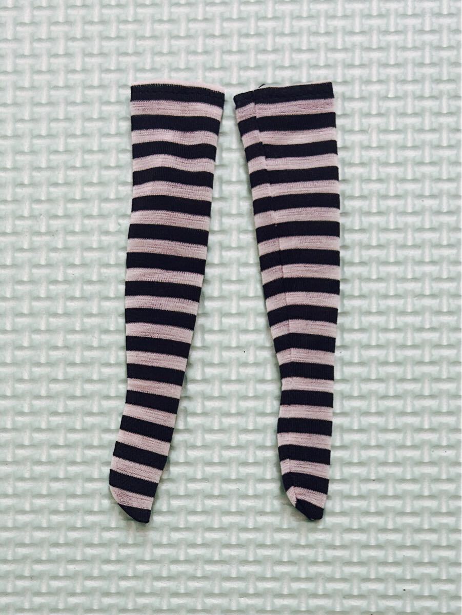 - メーカー不明 ボーダー ニーハイソックス 薄手 ドール用