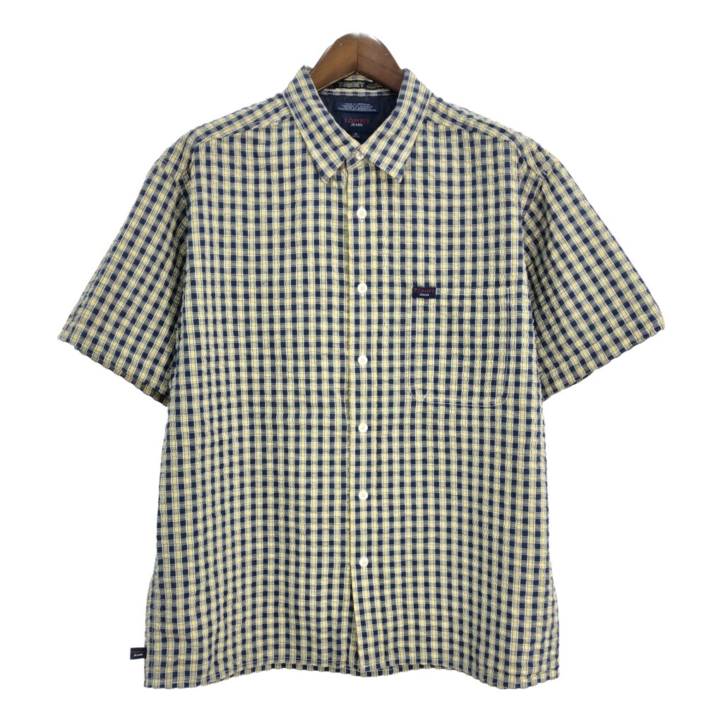 > TOMMY JEANS トミージーンズ 半袖シアサッカーシャツ チェック ネイビー(メンズ XL)中古 古着 U1839