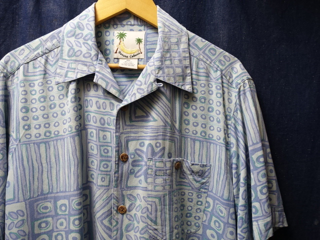 > SALE USA アメリカ 古着 ビンテージ 00'S Banana Cabana オープンカラー 開襟 総柄 半袖 シルク シャツ M / ヴィンテージ VINTAGE / 134