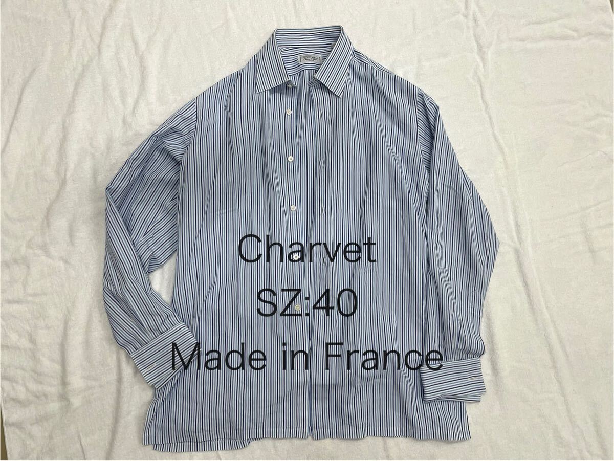> Charvet シャルべ made in Franceフランス製 長袖 シャツ ストライプ メンズ40 L M クラシック ドレス ビンテージ Turnbull & Asser arnys