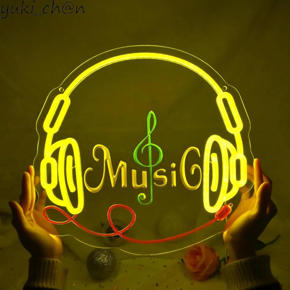 > ミュージックネオンサイン ヘットフォン ネオンライト 音楽飾り付け 装飾 屋内用 自宅 おしゃれ 間接照明 プレゼント カラフル 約32×32cm