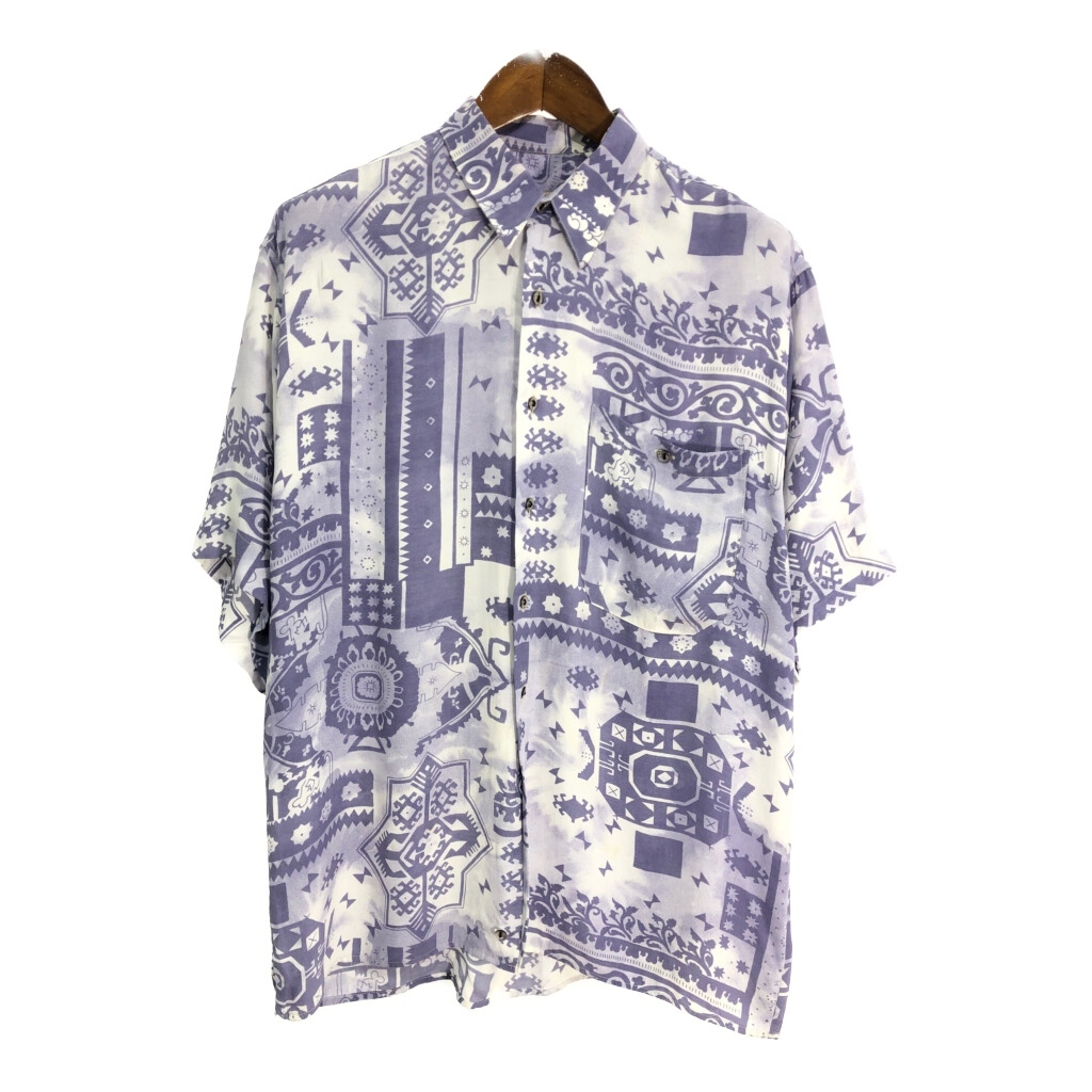 - 90年代 FIC TIF レーヨンシャツ 総柄 パープル(メンズ 40)中古 古着 U2762