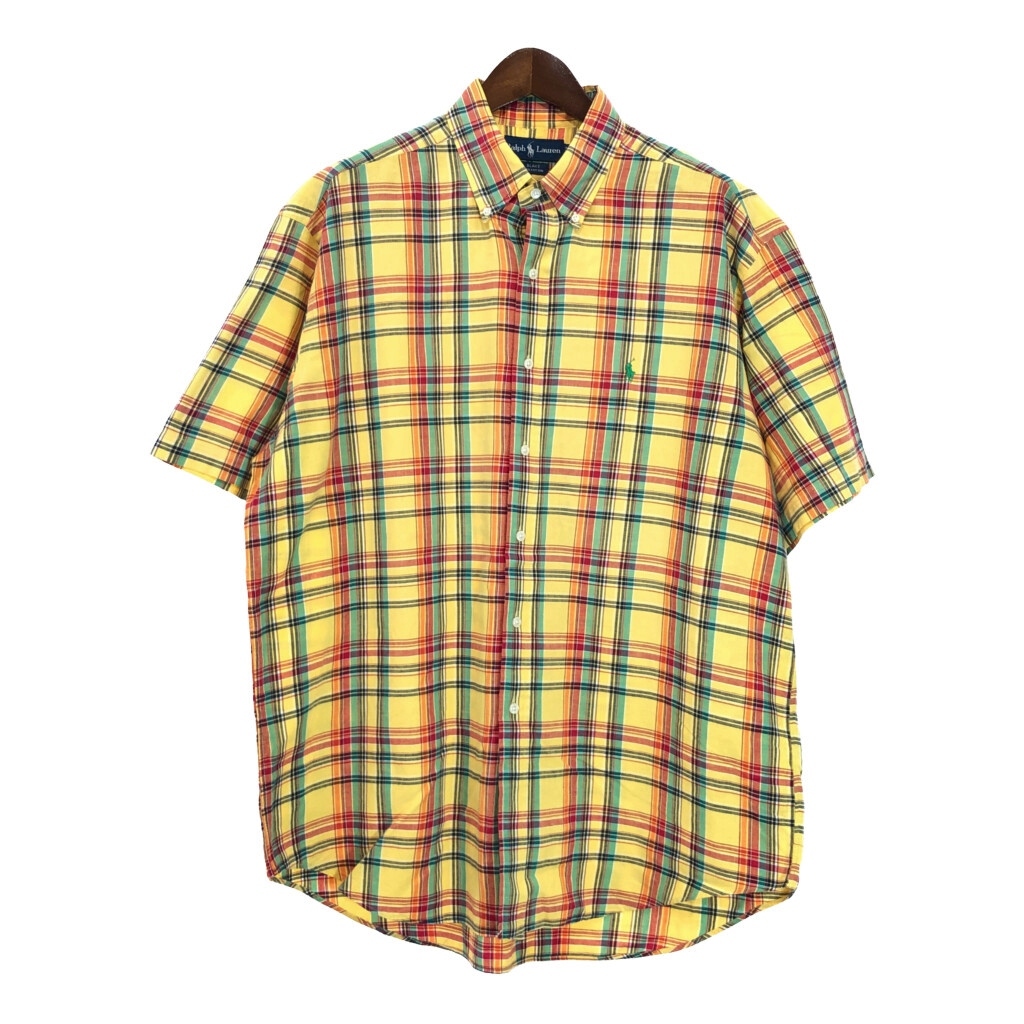 > RALPH LAUREN ラルフローレン ボタンダウン BLAKE 半袖シャツ チェック イエロー(メンズ XL)中古 古着 U2791