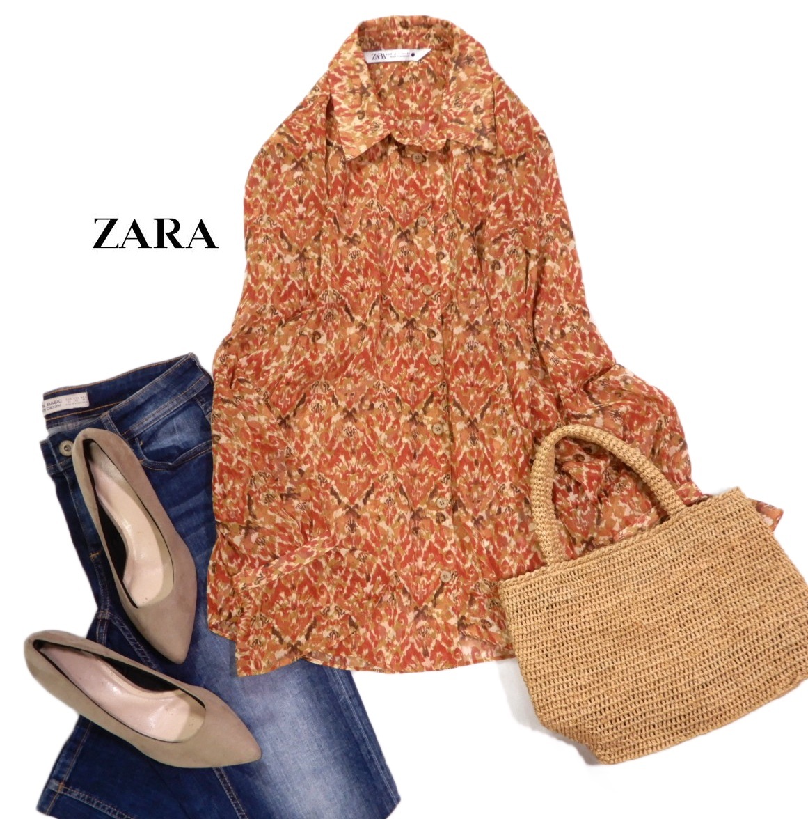 - ザラ ZARA 大人素敵スタイル☆ 総柄 シフォン シャツ ブラウス S