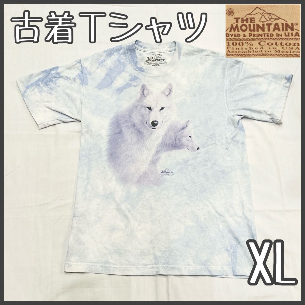 > 【美品】古着 Tシャツ 半袖 マウンテン 白 ホワイトオオカミ アニマルTシャツ 90年代 USA レトロ ヴィンテージ