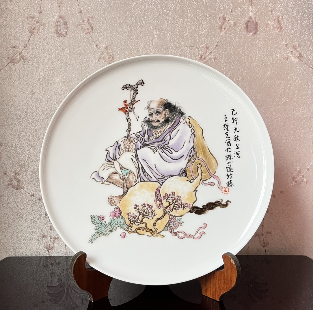 > 『三希堂』 中国磁器 [王隆夫] 巨匠作品 人物磁器皿 口径30cm 底径19.5cm 高さ4cm C08