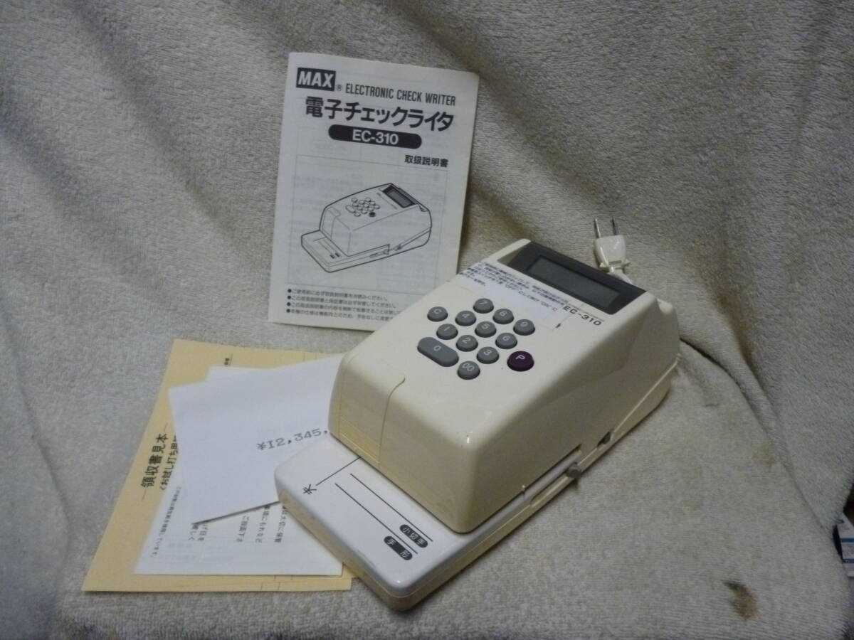 - @中古 印字確認済み MAX マックス 電子チェックライタ EC-310 印字最大8桁 説明書付き 小切手 手形 打刻 事務 店舗用品 OA機器 文房具