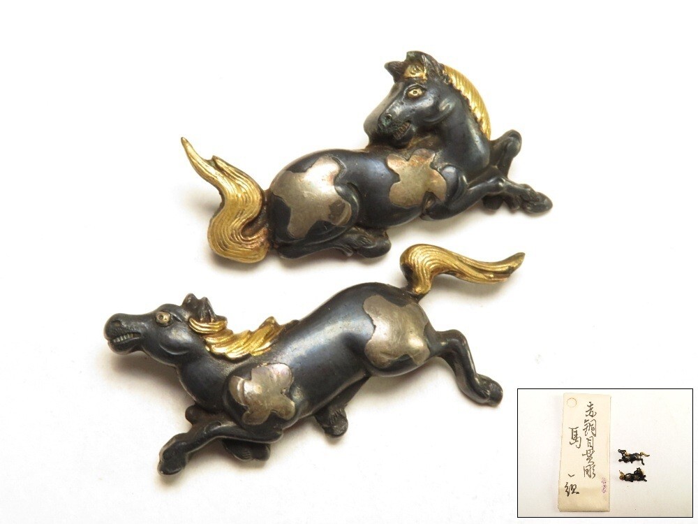 - 【10189】江戸~明治 堤物 金具 赤銅象嵌 馬 目貫 重量8g(初品・買取品)