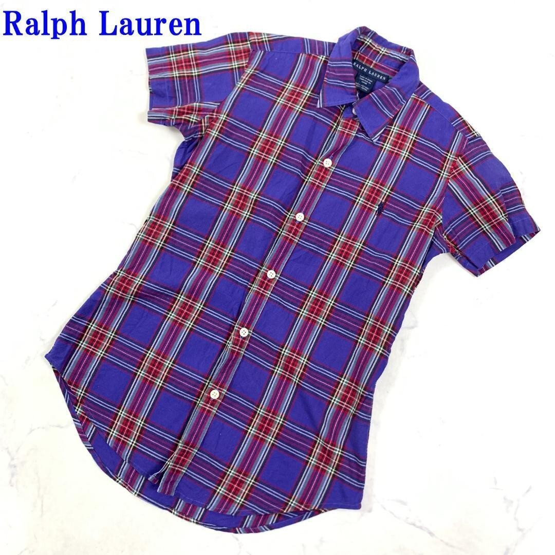 - ポロラルフローレン 半袖シャツ ブルー POLO RALPH LAURENチェック 綿100% 2 C2676