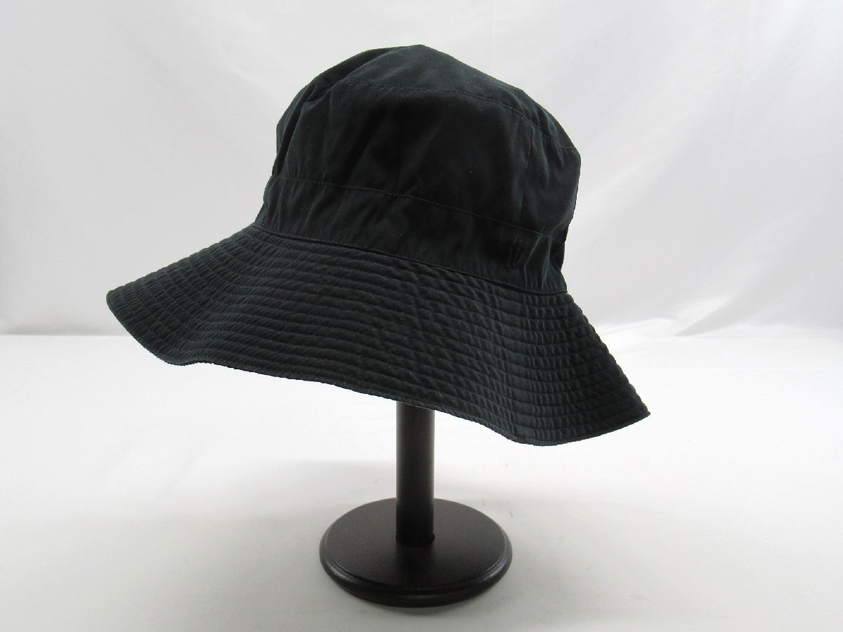 - ☆☆【B送900円】1759 HERMES エルメス バケットハット 帽子 日除け ツバ広 フランス製 ブラック ロゴ刺繍 ポリ×ナイロン 59