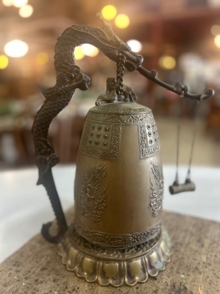 - 【ecorio/エコリオ】ヴィンテージ 仏教美術 古銅製 釣鐘 龍台座 鳴物