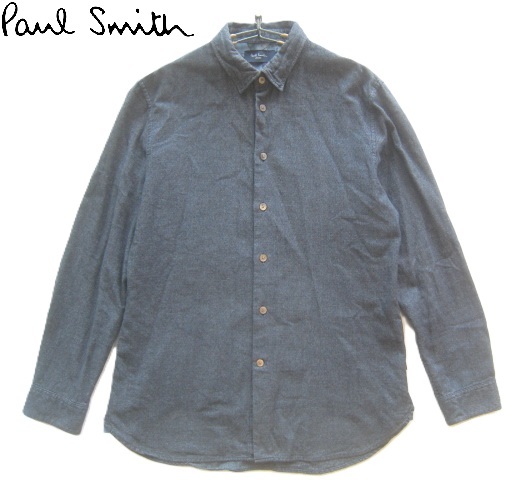 - 美品!!ポールスミス Paul Smith*ロゴタグ付き コットンフランネルシャツ L 濃紺 ネイビー
