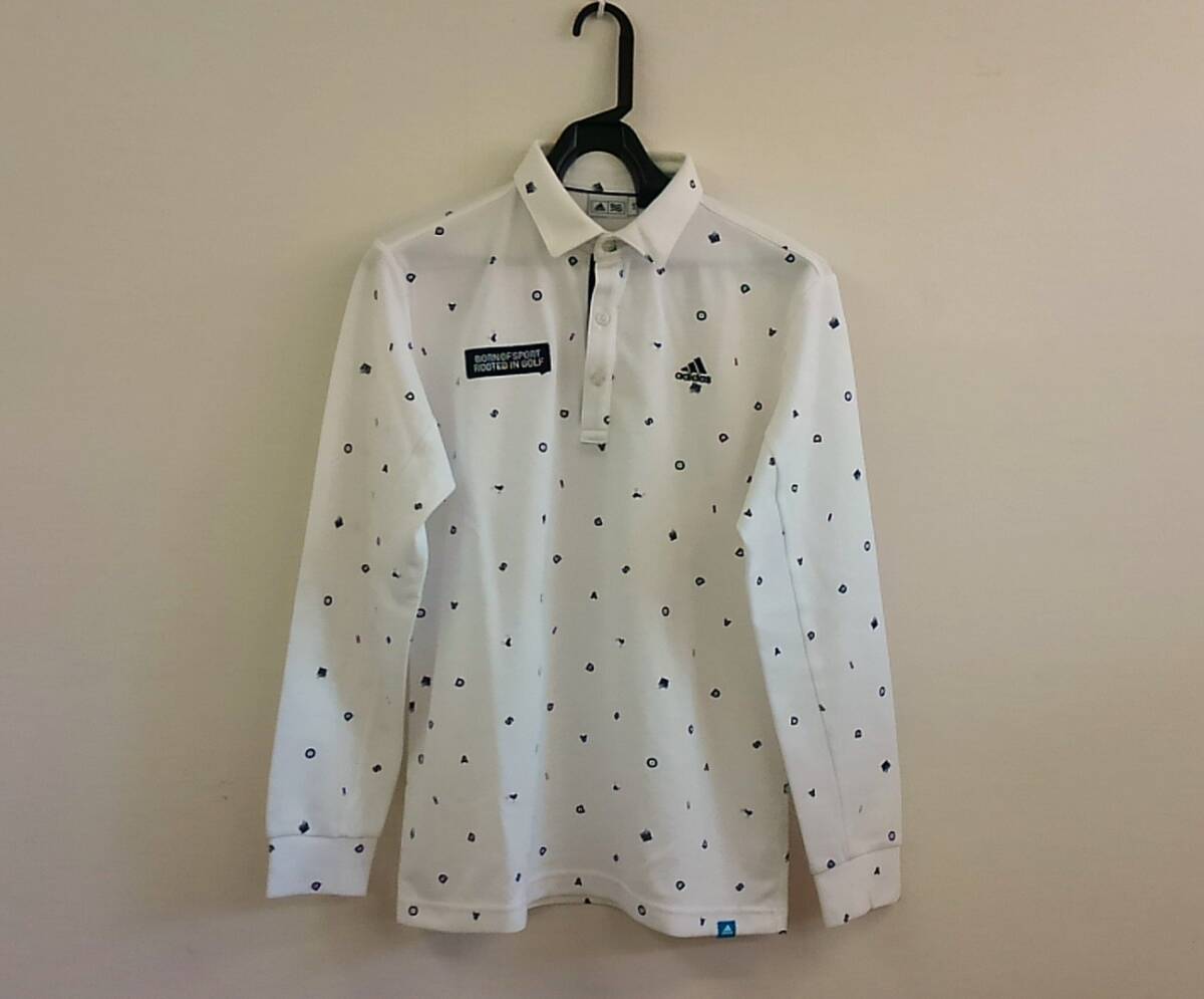- 【菊水-039】アディダス adidas/ポロシャツ/長袖/白×ネイビー/Lサイズ/メンズ/ゴルフ