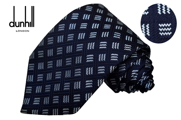 > N-2899★送料無料★超美品★dunhill ダンヒル★正規品 英国製 イングランド製 ネイビー紺 チェック 小紋 織り生地 絹 シルクネクタイ