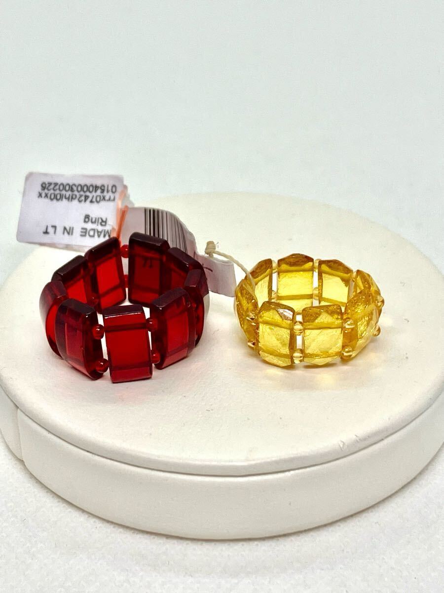 - 【新品】リトアニア産琥珀リング*こはくコハク*フリーサイズ*レッド琥珀*イエロー琥珀*アンバー*伸縮リング*天然琥珀*2点セット