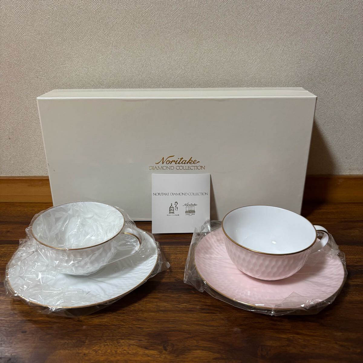- 未使用 廃盤 ノリタケ 最高級 Noritake ダイヤモンドコレクション カップ ソーサー 白磁 ピンク 2客セット 金彩 送料無料