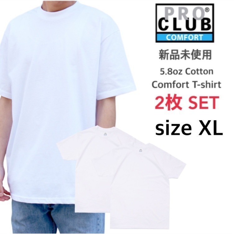 - 新品未使用 プロクラブ 5.8oz コンフォート 無地 半袖 Tシャツ 白 XLサイズ 2枚セット PRO CLUB 102 ホワイト クルーネック