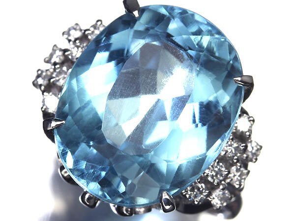 > 7ML14121S【売り切り】新品【RK宝石】≪Blue Topaz≫ 極上スカイブルートパーズ 特大17.4ct!! 極上ダイヤモンド Pt900 高級リング ダイヤ