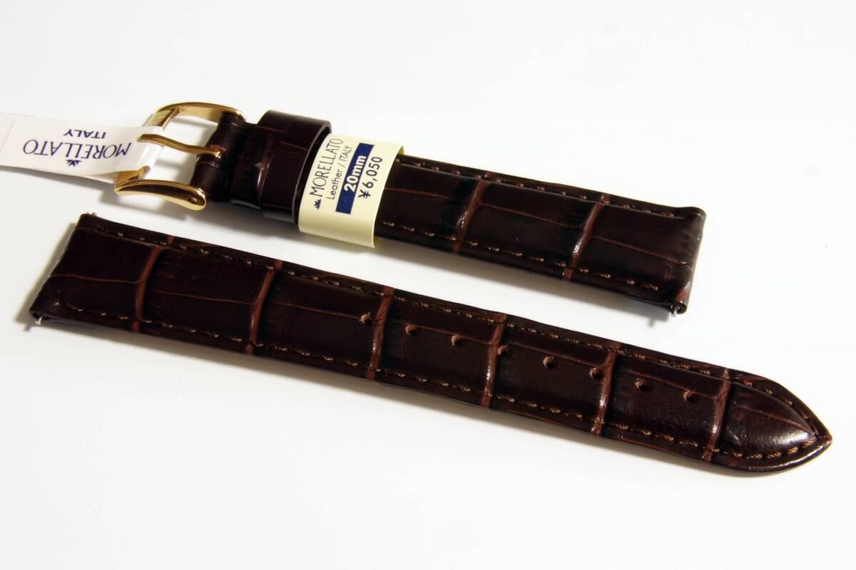 - 《送料サービス》 ラグ幅 20mm カーフ(アリゲーター型押し) モレラート サンバ ダークブラウン クリッカー仕様