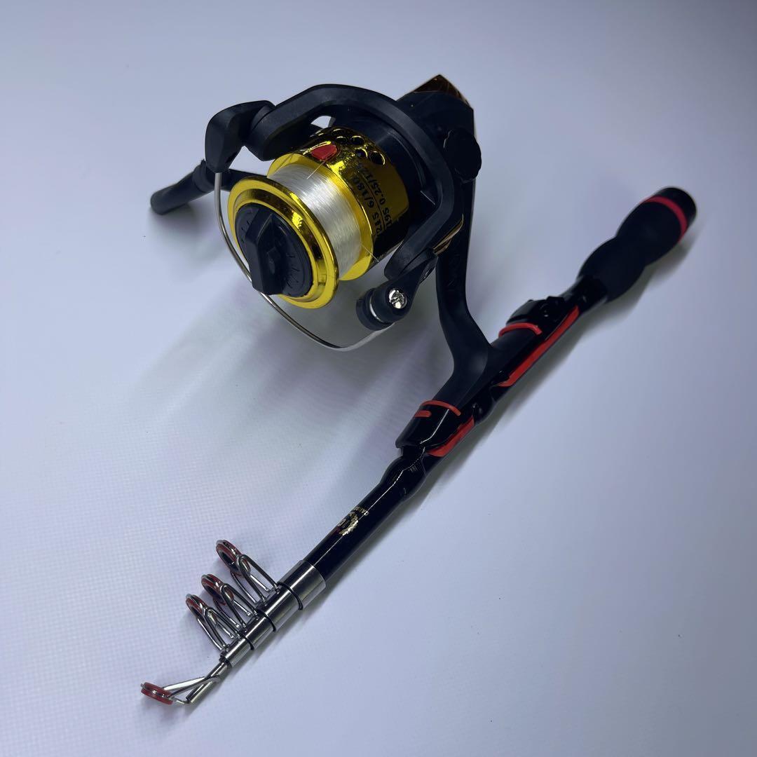 - 1m竿 リールセット 糸付き コンパクトロッド 釣り竿 短竿 穴釣り 探り釣り 伸縮 振り出竿 赤 レッド 金 ゴールド