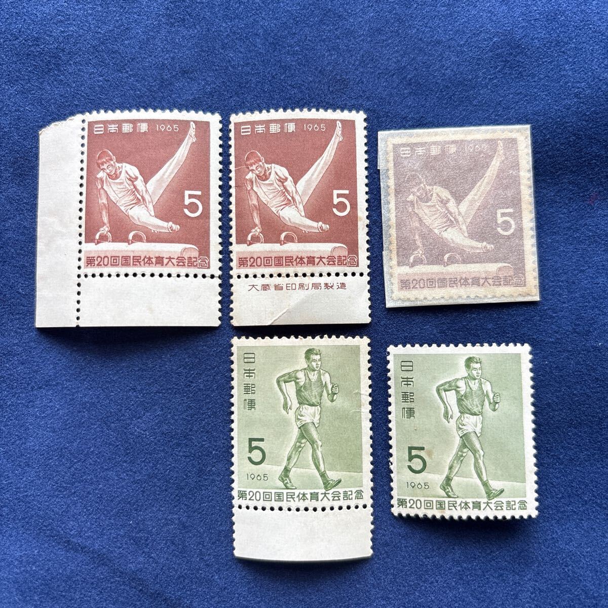 - 記念切手 【第20回国民体育大会記念】未使用 バラ5枚 2種完 1965年 体操 陸上 スポーツ 日本郵便 昭和レトロ コレクション Japan 送料無料