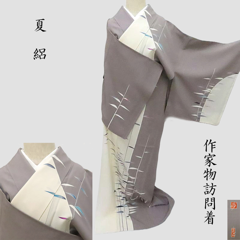 > Club藤★夏 絽 訪問着 作家物 手描き染め 竹ノ葉文様 フォーマル 茶道着物 お茶席着物 御仕立上り(3424)