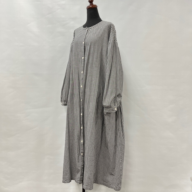 - Bliss bunch/ブリスバンチ/ギンガムチェックノーカラーマキシワンピース/ブラック×ホワイト/サイド・バックボックスプリーツ/フリーサイズ