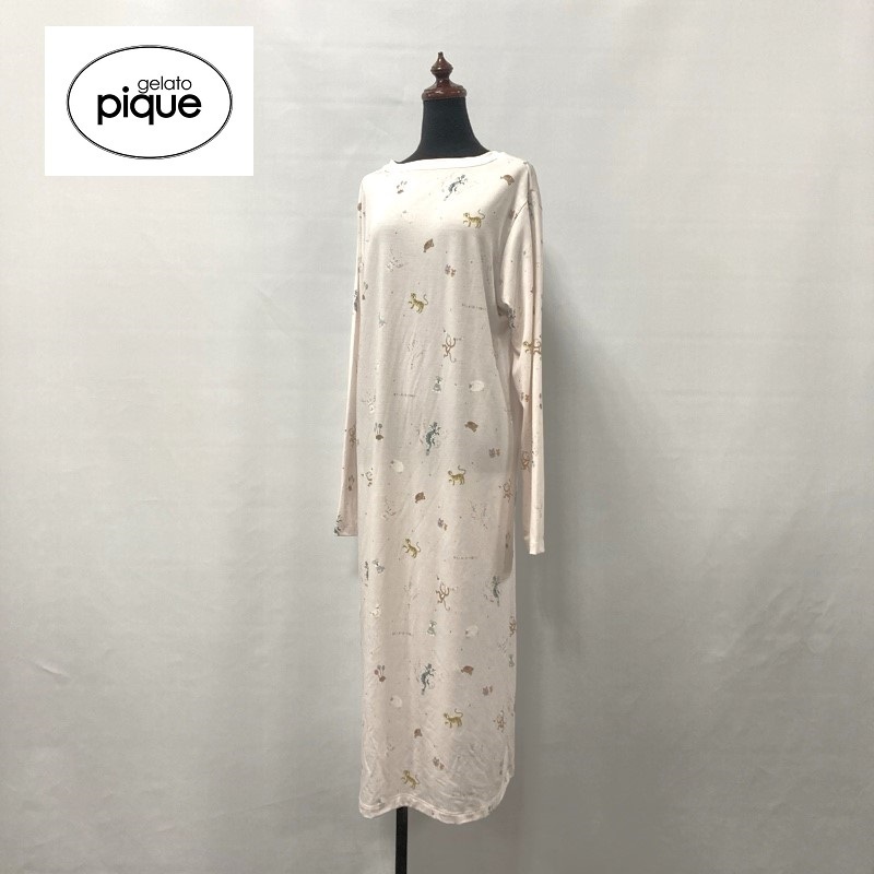 > gelato pique/ジェラートピケ/干支/十二支柄/ネグリジェ/なめらかストレッチ素材/長袖/ワンピース/クルーネック/ピンク系/ONE SIZE