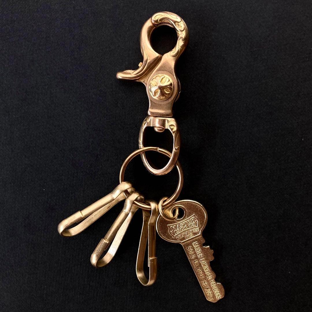 > 214 真鍮 キーホルダー キーリング キーフック カラビナ 鍵 ビンテージ レトロ アンティーク アクセサリー パーツ ハンドメイド 金色