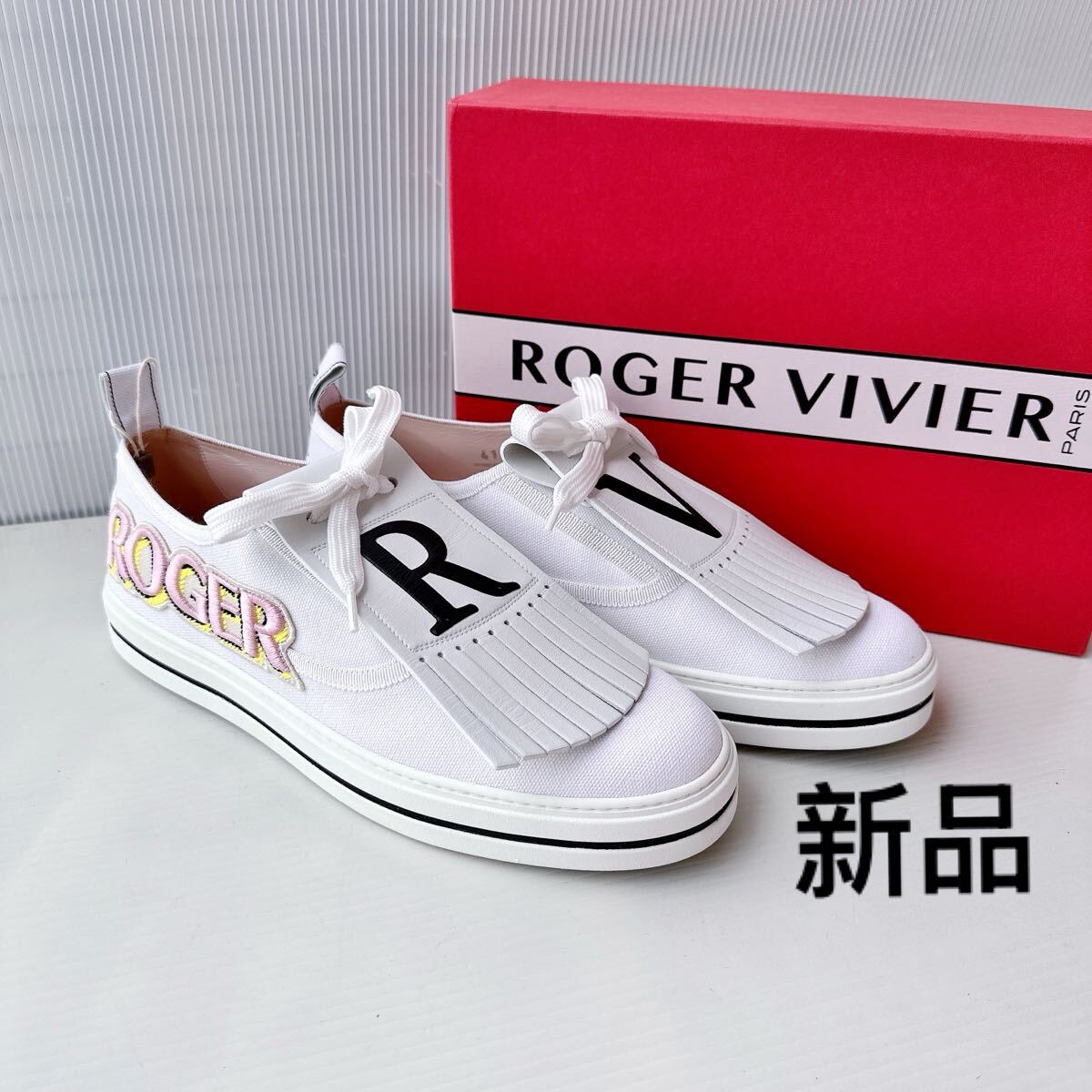 - Roger Vivier ロジェヴィヴィエ フリンジ 刺繍ロゴ入り スニーカー スリッポン 新品 41 白 ホワイト キャンバス レーディス シューズ 靴