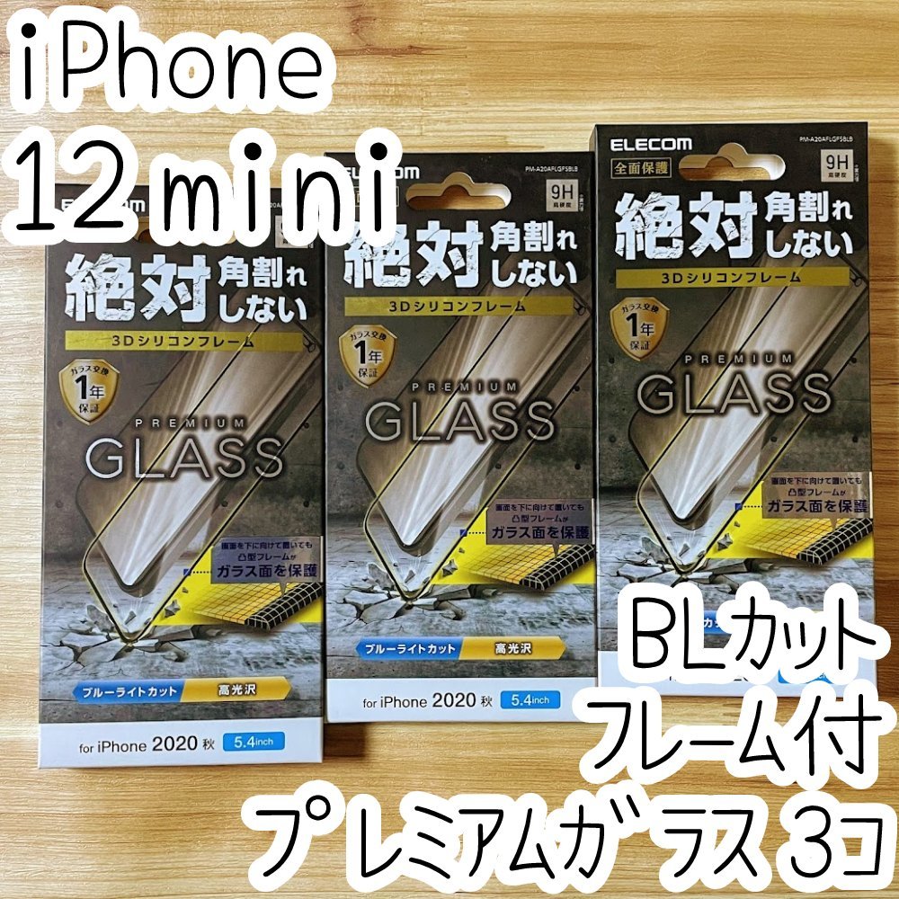 > 3個 エレコム iPhone 12 mini プレミアム強化ガラスフィルム ブルーライトカット 高光沢 液晶保護 シール シート 全面保護 フルカバー 675