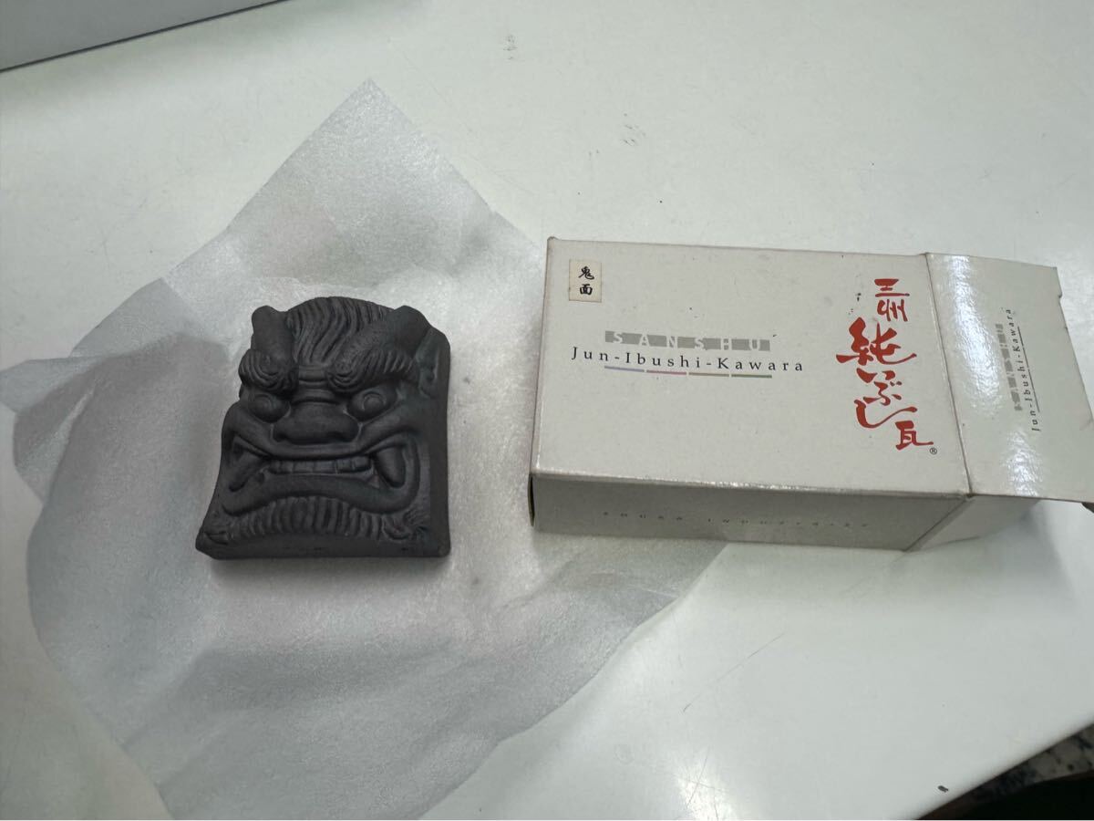 - 三州瓦 鬼面 瓦職人 魔除け 三州純いぶし瓦 小型 置物 三州創嘉 文鎮 ペーパーウエイト