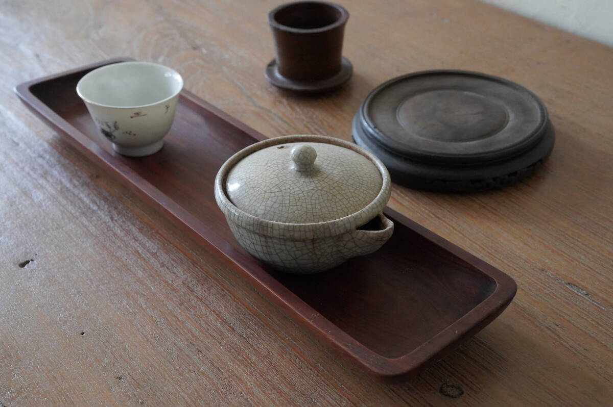 - 木彫り インテリア 盆 茶盆 古卓 ヴィンテージ 木台 木の器 ディスプレイ 古盆 古道具 茶卓 古美術 ③