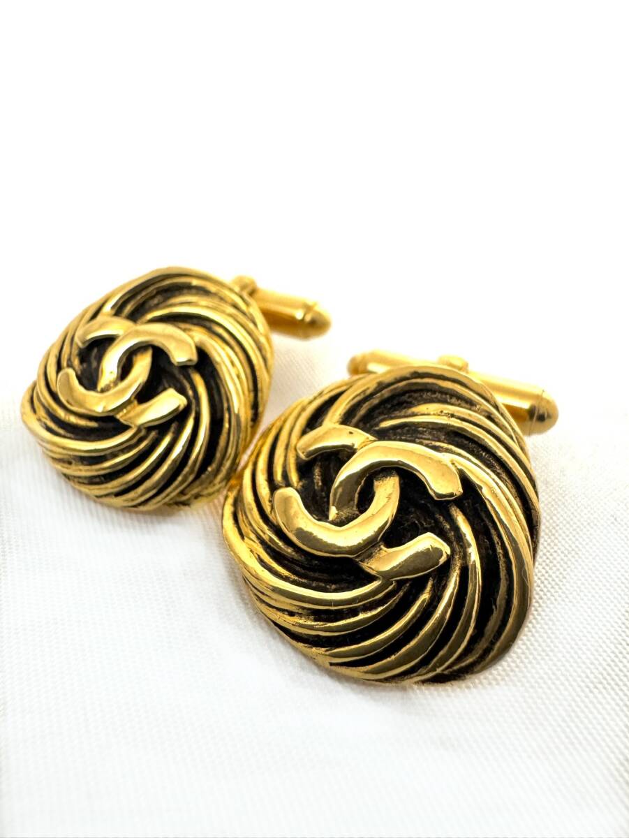 > 7E2512【本物保証】シャネル カフス ボタン ココマーク ラウンド ゴールド 刻印有り vintage CHANEL