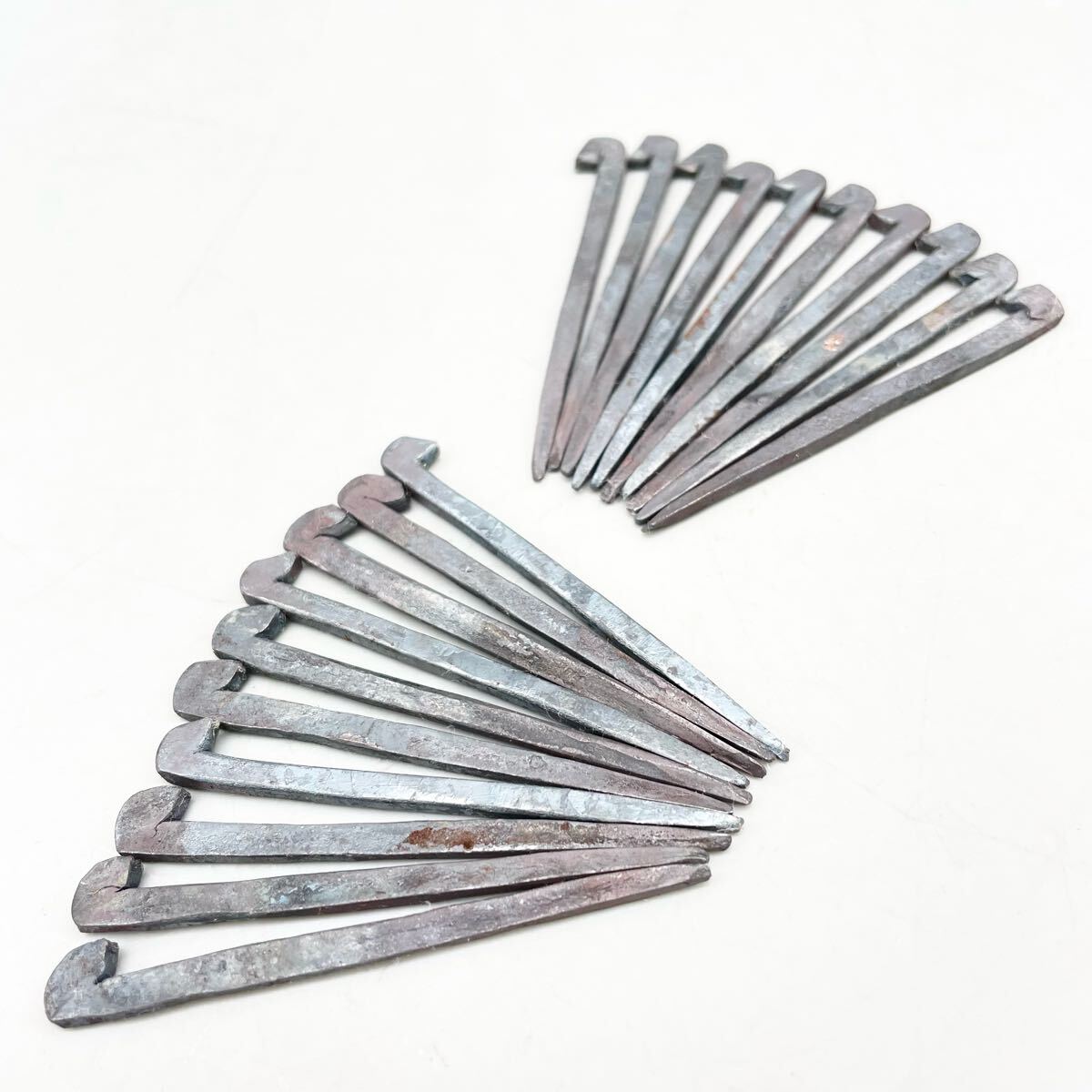 > 【送料全国一律360円】階折釘 二寸 約3×57mm アンティーク 釘 手打ち 火造り 20本 セット かいおれくぎ 和釘 替折釘 金物屋 在庫品 まとめ