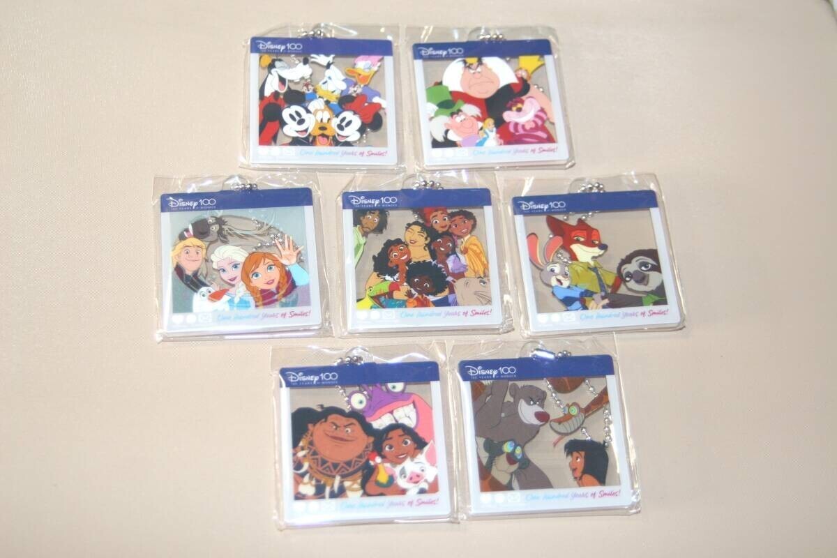 > ディズニー “Disney 100” アクリルキーホルダー 不思議の国のアリス・ミラベルと魔法だらけの家 モアナと伝説の海アナ雪 他 7個セット