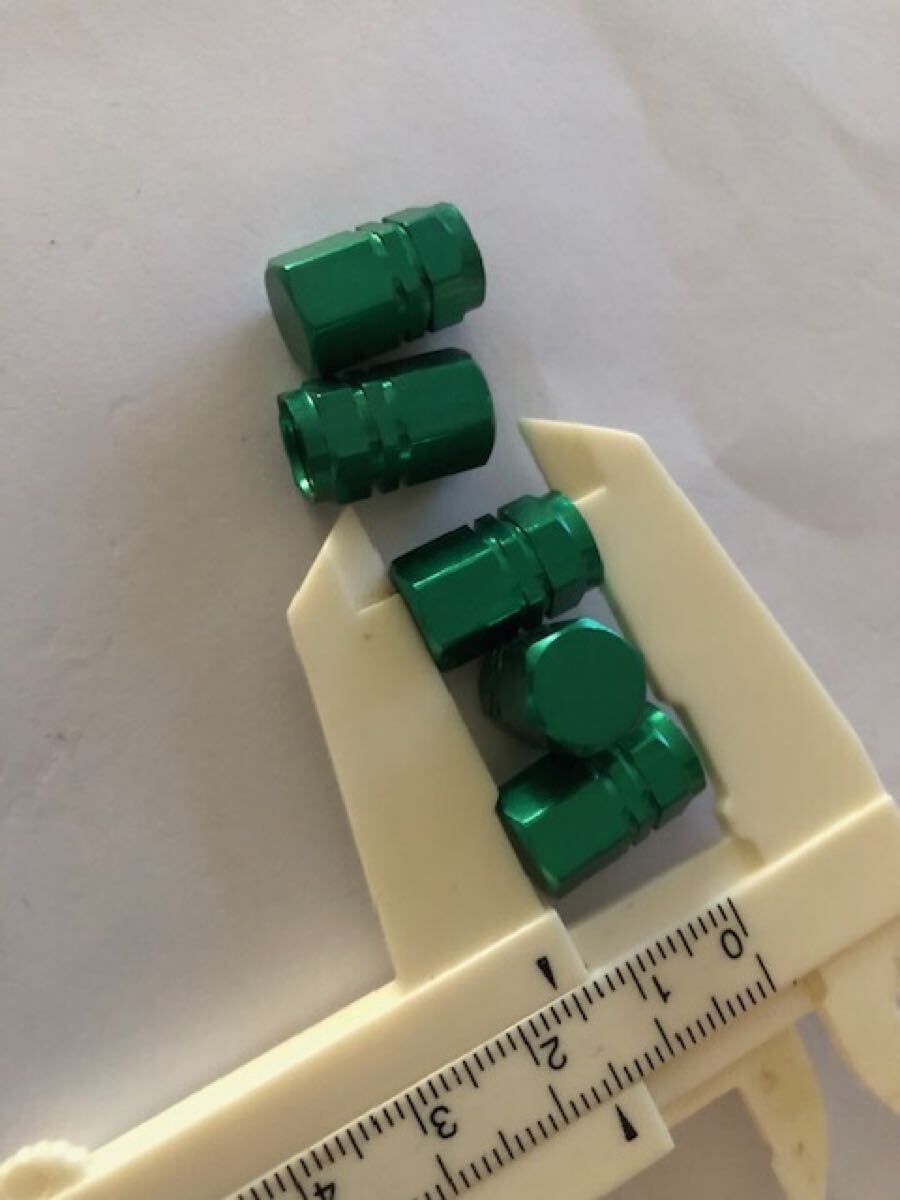 - 送料サービス!ちょー特価 珍色 グリーン アルミタイヤバルブキャップ 5個セット!