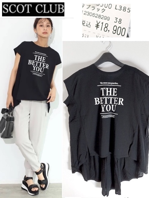 - ★送料込★【新品18,900円 スコットクラブ】 異素材 タックデザイン ロゴカットソー (黒)ヤマダヤ 後 チュニック