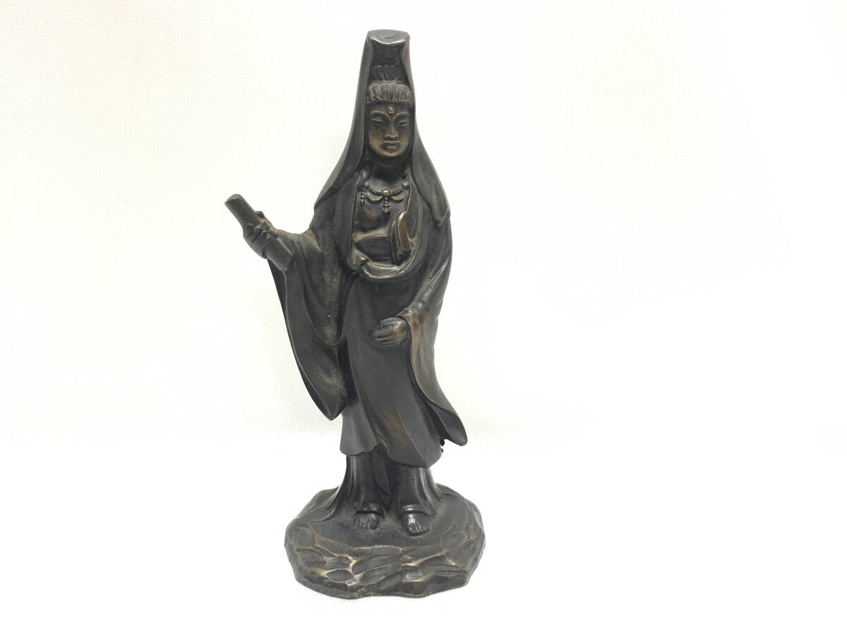 - u335 観音菩薩 瑞峯作 銅製 ブロンズ 仏像 置物 宗教美術 約1.1kg 風水 開運 金運 招財 彫刻