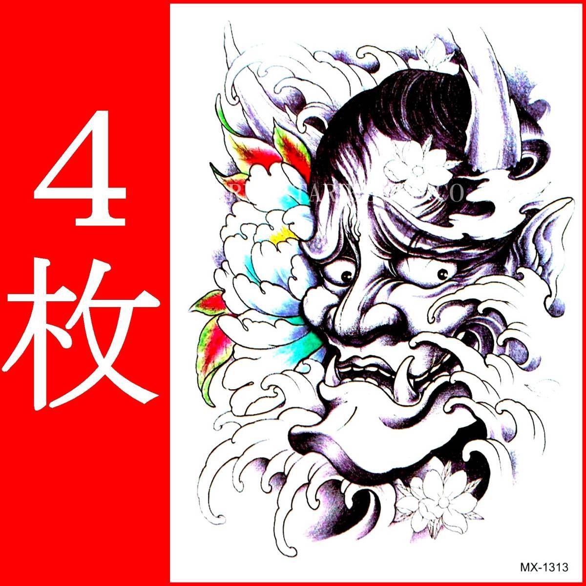 - タトゥーシール 4枚 21X15cm 入れ墨 タトゥーステッカー 消せる刺青 ボディーアート ハロウィン あおり運転対策 コスプレ 般若 白黒 牡丹