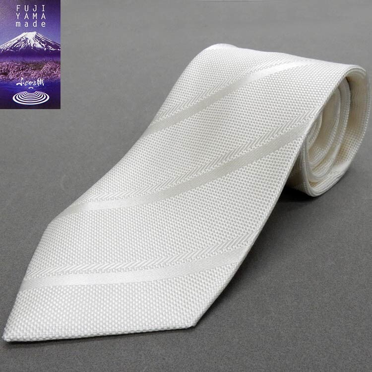 - ふじやま織 フォーマルタイ シルク100% 白 ネクタイ 結婚式 ストライプ 大剣幅8.5cm メール便OK fj-07wh