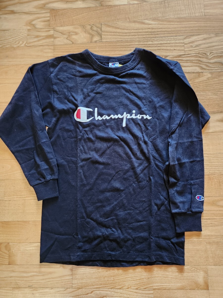 > 1990年代製 送料込■Champion チャンピオン 胸プリント長袖Tシャツ アメリカ製 ブラック M