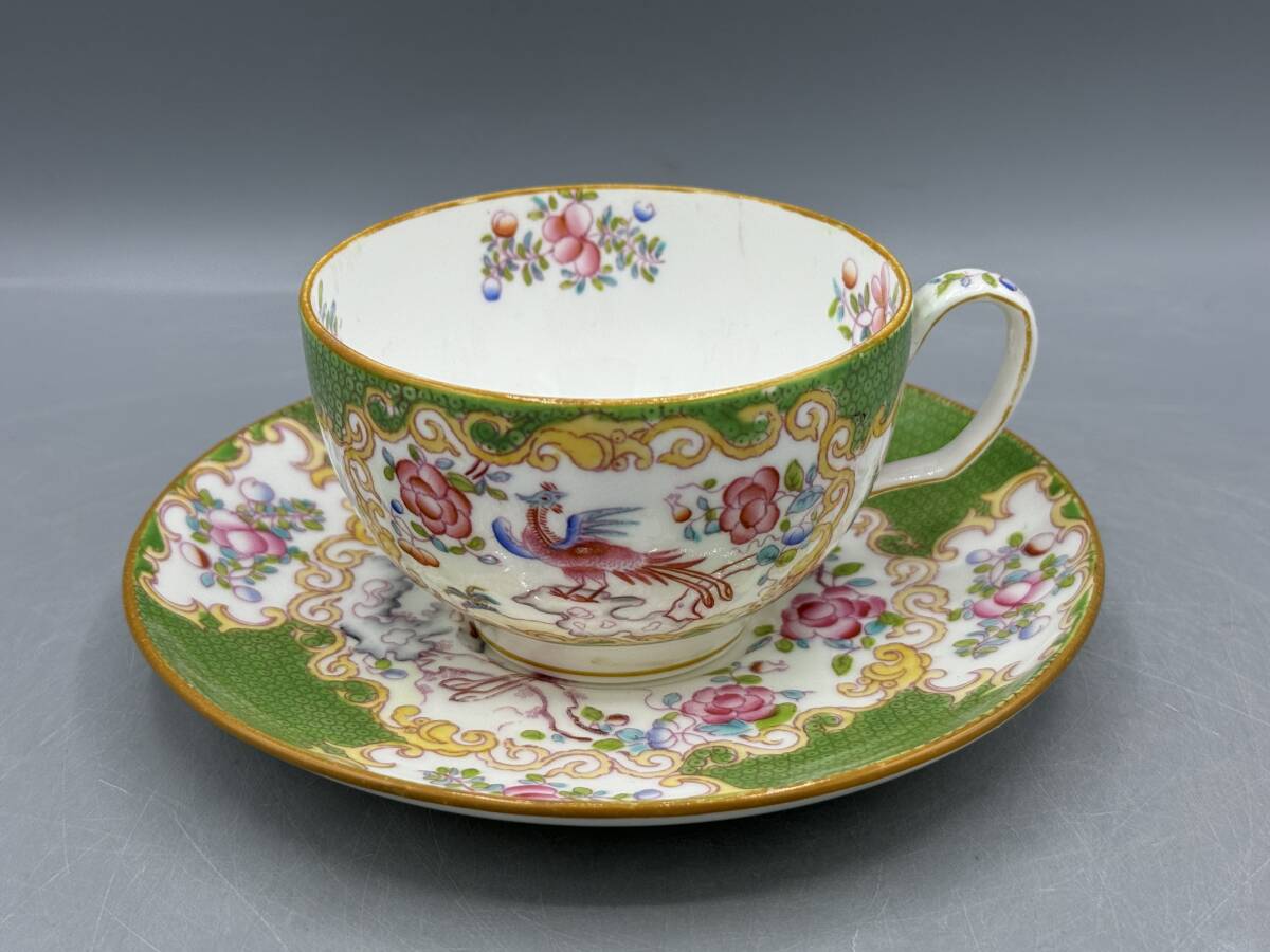 - ミントン グリーン カップ&ソーサー コカトリス エナメル 花 (#-7-H) カップアンドソーサー